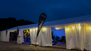 The pavilions are set up in a circle on the WHEELS & WAKE grounds (see picture above), forming a kind of „village square“ around the main event, where the most beautiful motorcycles are exhibited, the motorcycles are presented, and the award ceremony takes place. All pavilions are therefore at approximately the same distance from the event. As exhibitor interest grows significantly each year, it may be necessary to set up the pavilions in two semicircles.