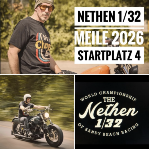 Nach der WHEELS & WAKE ist vor der WHEELS & WAKE. Und daher ist es quasi Tradition, dass der erste Bewerber für die 1/32 des nächsten Jahres einen Startplatz erhält. Thilo Günther, der Weltmeister des Jahres 2025, war über den Zielstrich, hatte aber noch nicht seinen Pokal in der Hand, da lag diese Bewerbung in unserem Postfach. Kein Wunder, dass Jochen zu dem Zeitpunkt noch nicht absehen konnte, ob er mit der Harley Sportster aus dem Jahre 1986 oder der Moto Guzzi des Jahres 1982 an den Start gehen wird. Ist ihm auch egal, da beide in seiner Garage stehen. Uns auch. Kann man beide gebrauchen auf der 1/32.