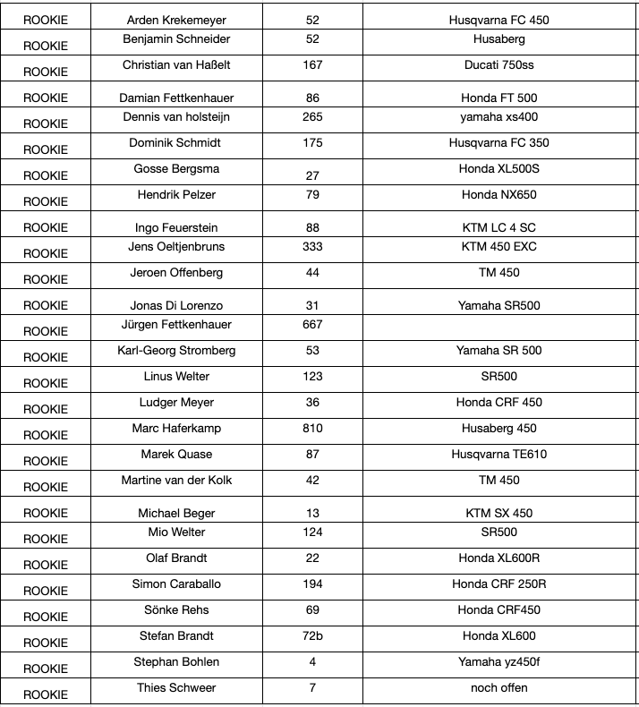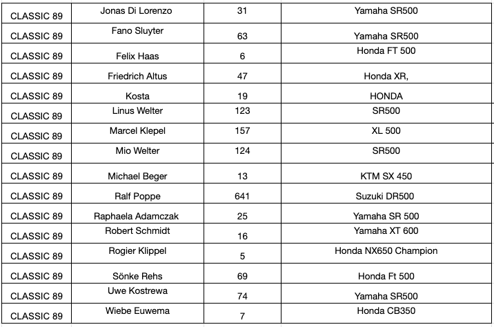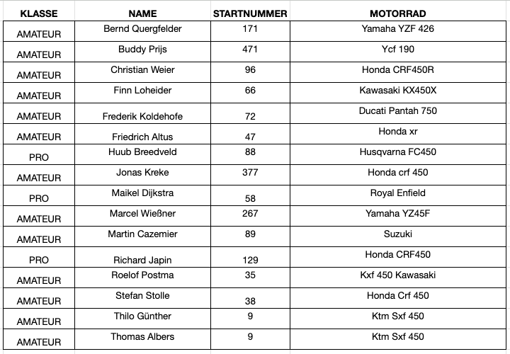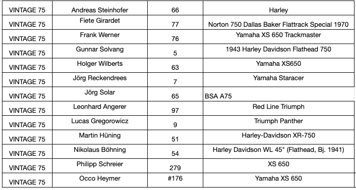 nachfolgend das Teilnehmerfeld der FLATTRACK FRIDAY NIGHT im Rahmen der WHEELS & WAKE 2025